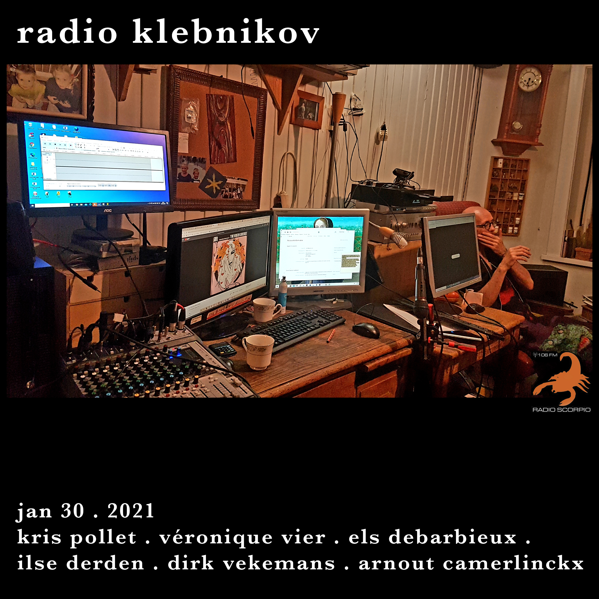 Integrale uitzending van RADIO KLEBNIKOV op zaterdag 26/12/2020 live vanuit het Centrum van het Gekende Universum in Tienen met deze keer de al dan niet ingezoomde présence van Arnout Camerlinckx, Els Debarbieux, Dirk Vekemans, Zaahne Houbrechts en Kris Pollet.