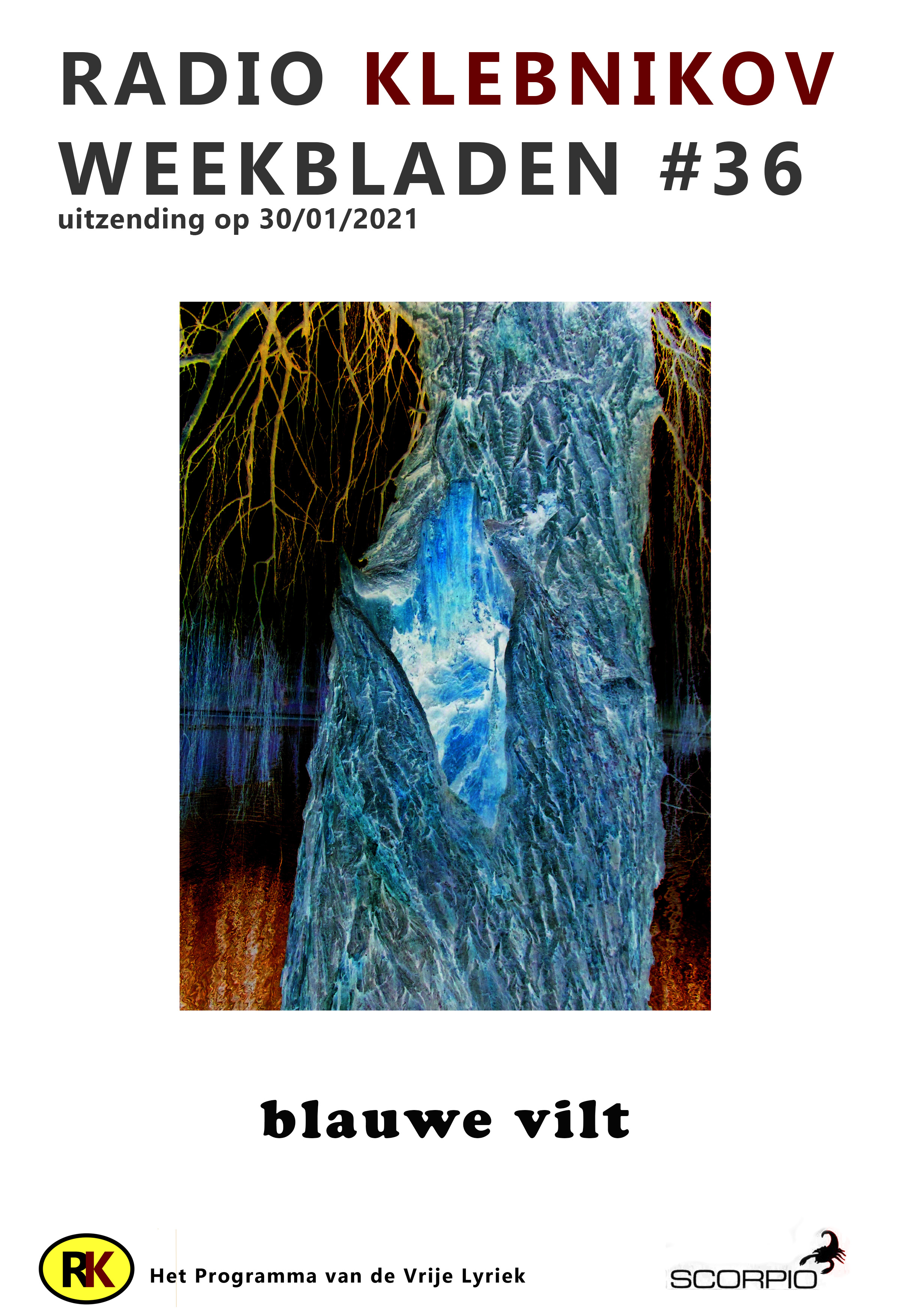 RK WEEKBLADEN = tekstverzameling waaruit geput kan worden tijdens de uitzending van RADIO KLEBNIKOV, het programma van de Vrije Lyriek elke zaterdag 18-20u op Radio Scorpio.