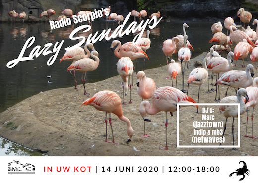 Luister zondag 14 juni naar de “chill in uw kot” DJ-set van Scorpio’s Lazy Sundays tussen 12:00 en 18:00 via de luisterlink.